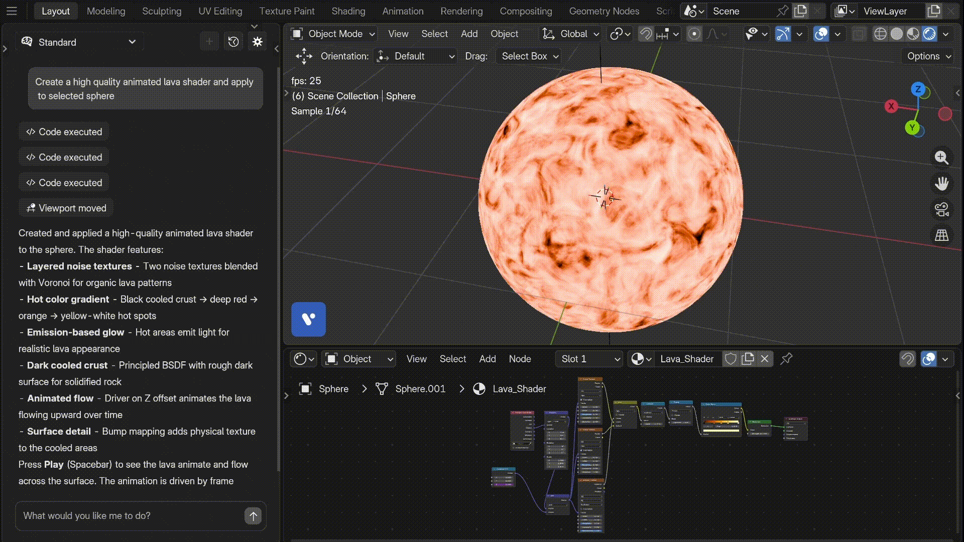 The AI has tools to read, see and manipulate your scene. You can ask it to do anything, and it will try its best to achieve the result.